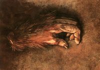 Among the sergeant major’s many tales is that of a Monkey’s Paw, cursed by a Fakir who wanted to show people not to mess with fate. The White’s ridicule the story. Morris throws the paw into the fire, and Mr. White, despite his professed incredulity, fetches it out, against Morris’s protestations.