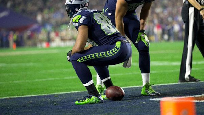 The Seattle Seahawks were in control of the 2015 Superbowl. Doug Baldwin had just scored a touchdown, giving Seattle a 24-14 lead, and celebrated by pooping a football and drawing a 15-yard penalty. Meanwhile, Richard Sherman was pointing to the camera, referencing the score and the number of the defensive back who had given up the touchdown.