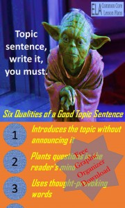 I’ve taken my favorite paragraph writing lesson plans and put them into the Paragraph Teaching Guide. It includes 10 lesson plans aligned to the common core standards, notes for each lesson, and over 15 ready-to-use graphic organizers and handouts. It’s only $5.95. Get a sample topic sentence lesson plan from the guide for free.